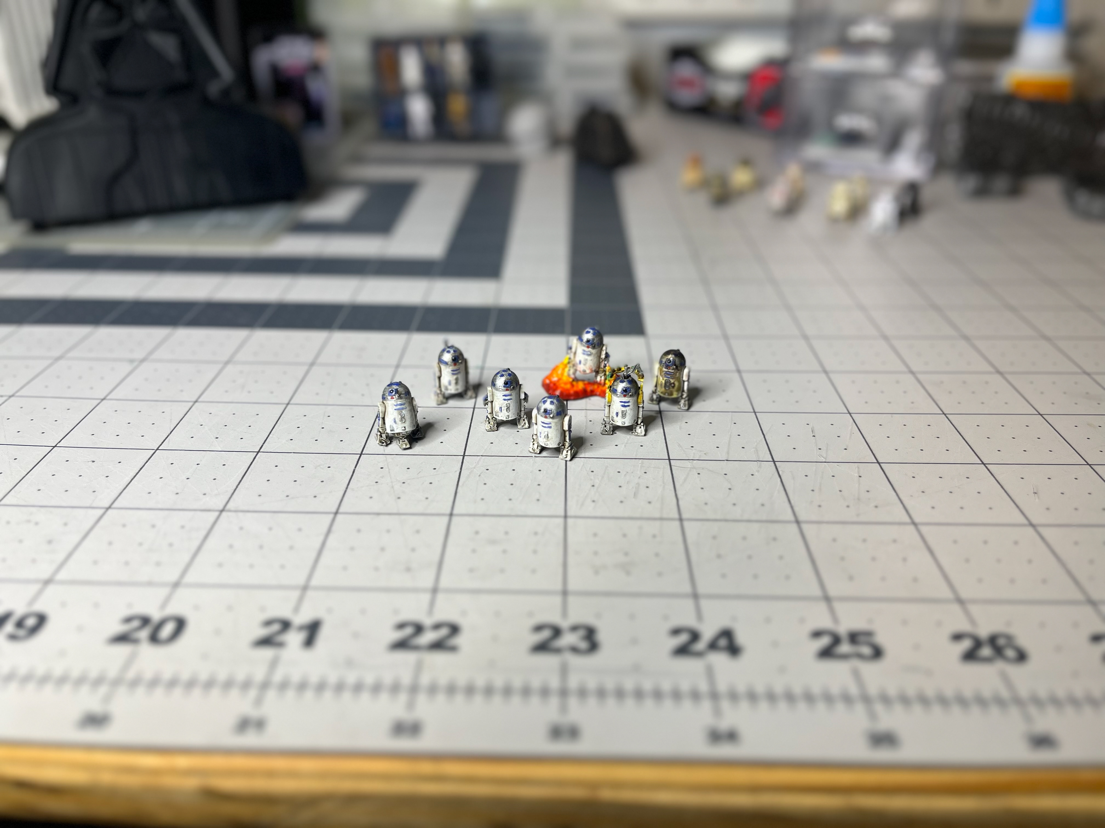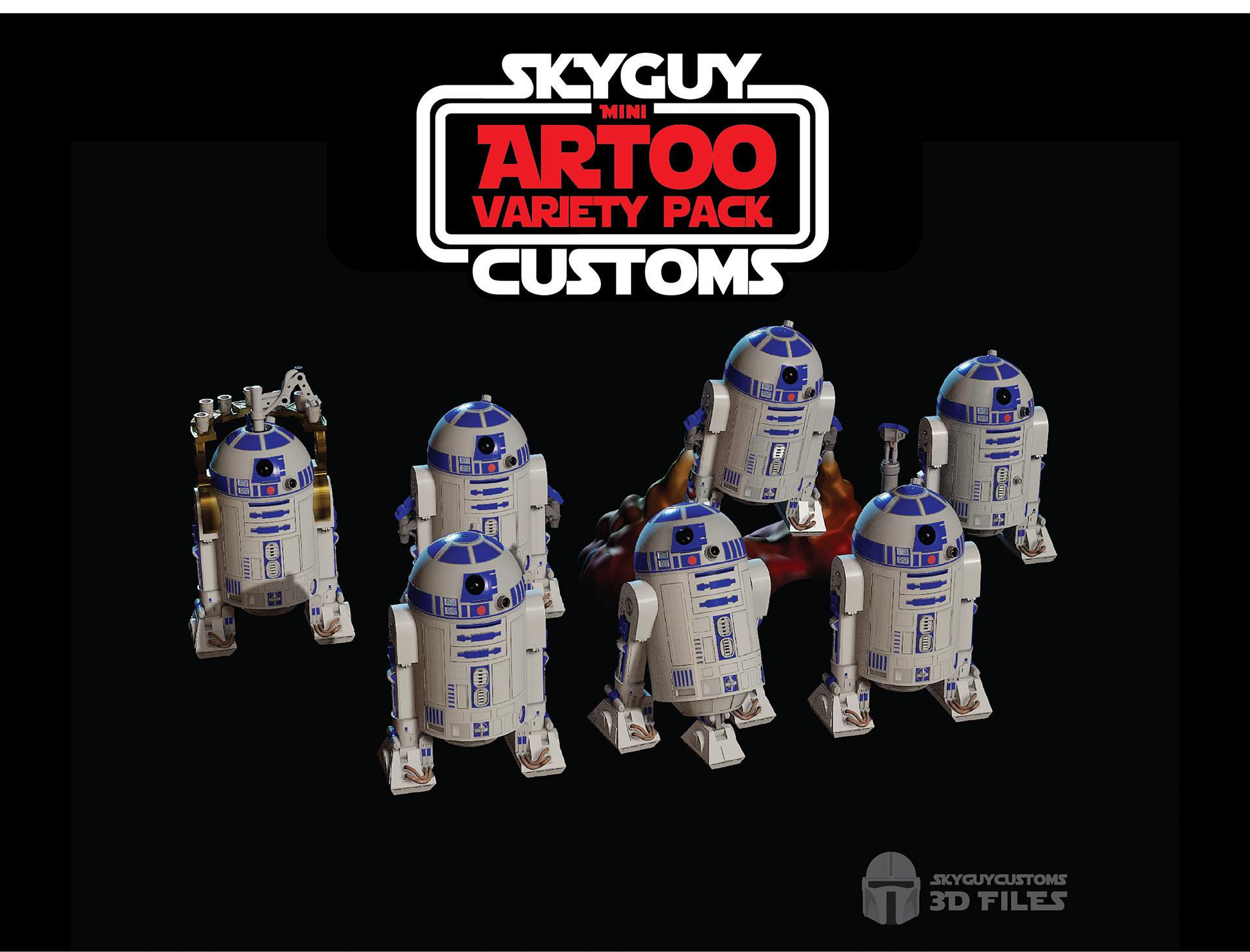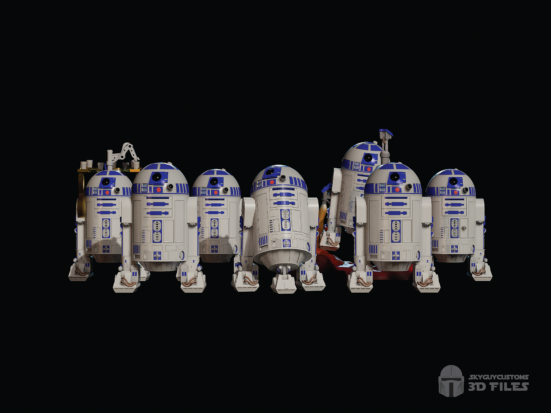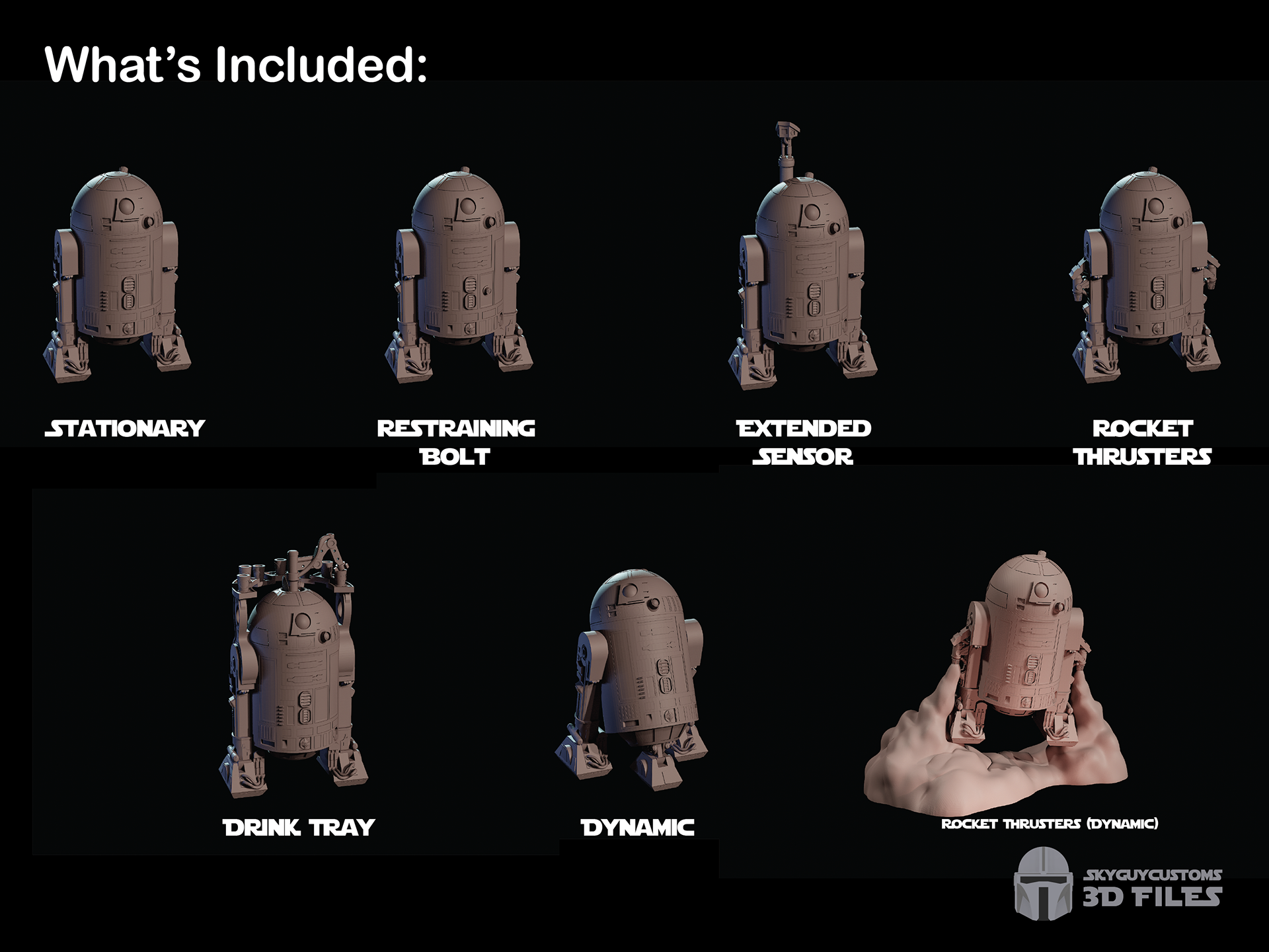 Astromech figures designed to fit the scale of the Jazwares micro galaxy squadron figures. Figures designed in Shapr3d. Stationary models fit into MGS ship droid slots.