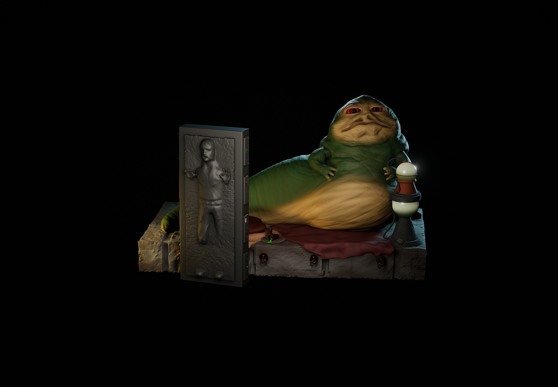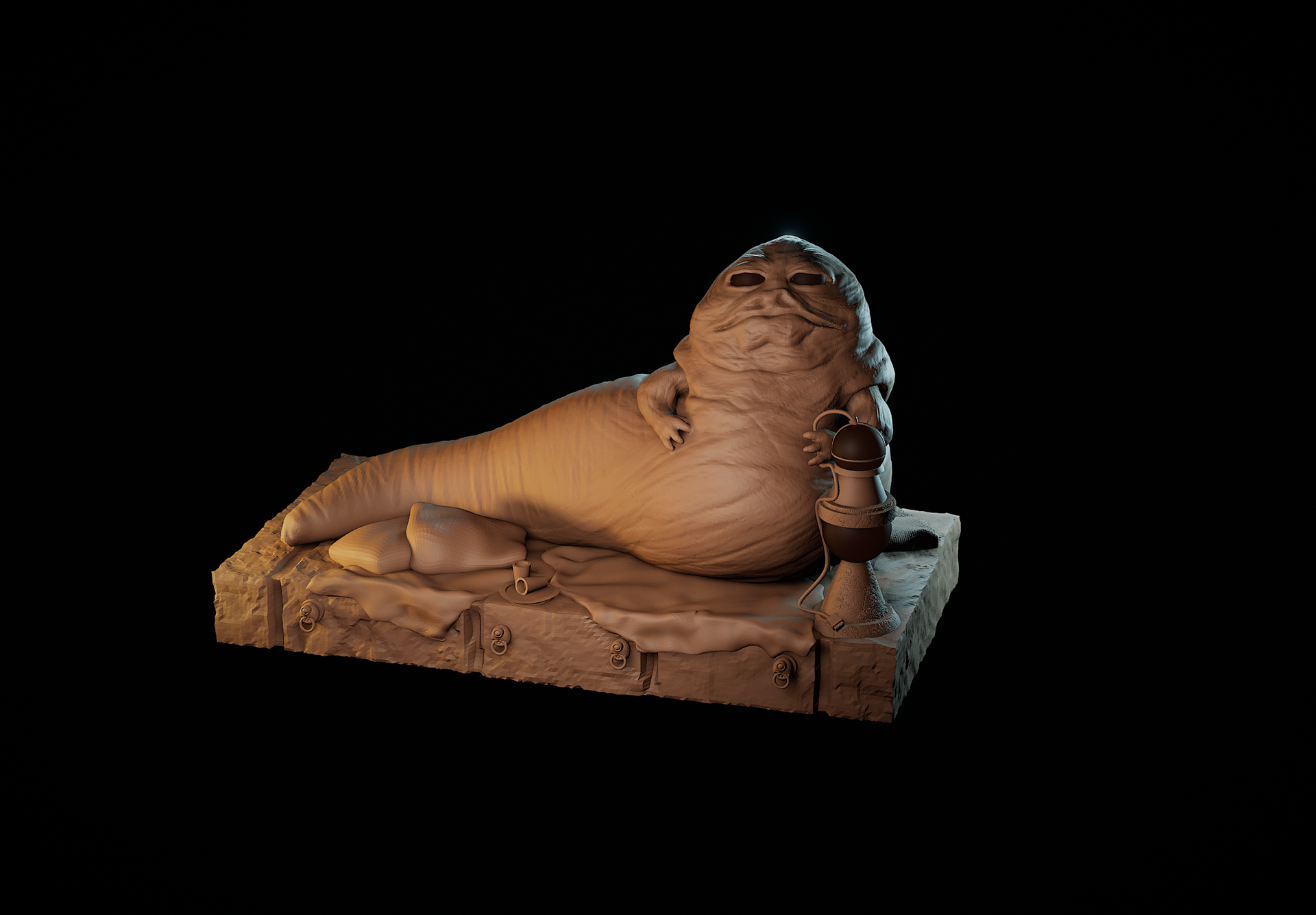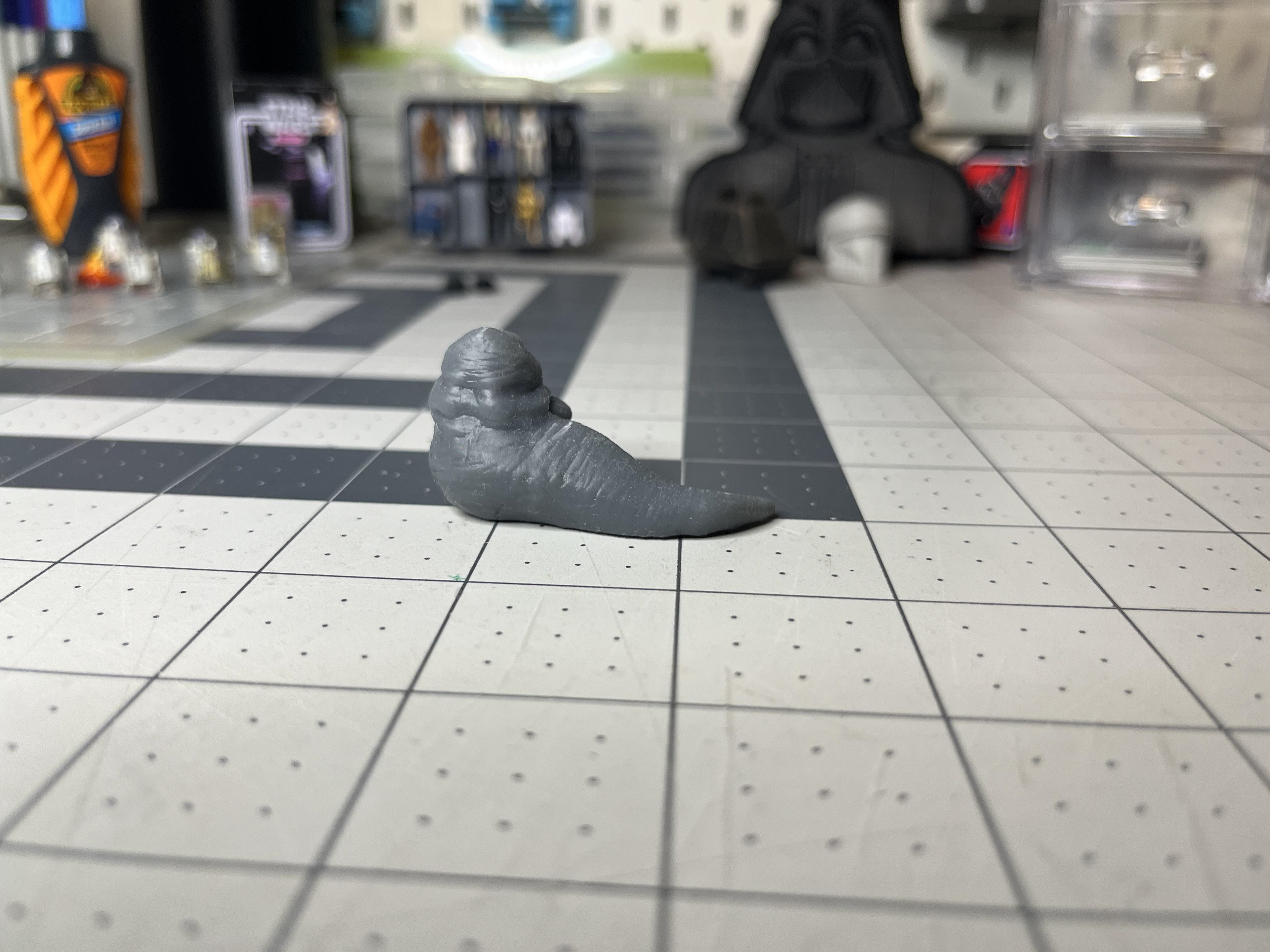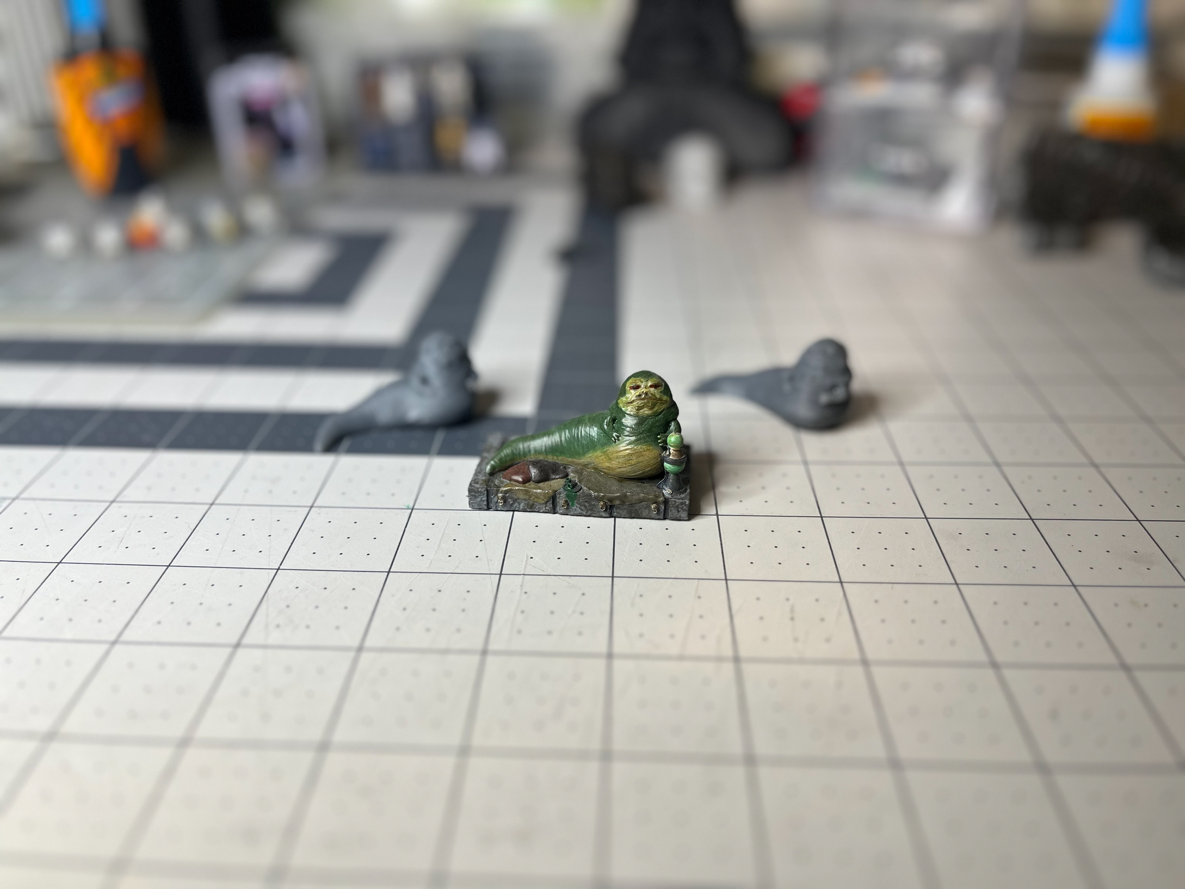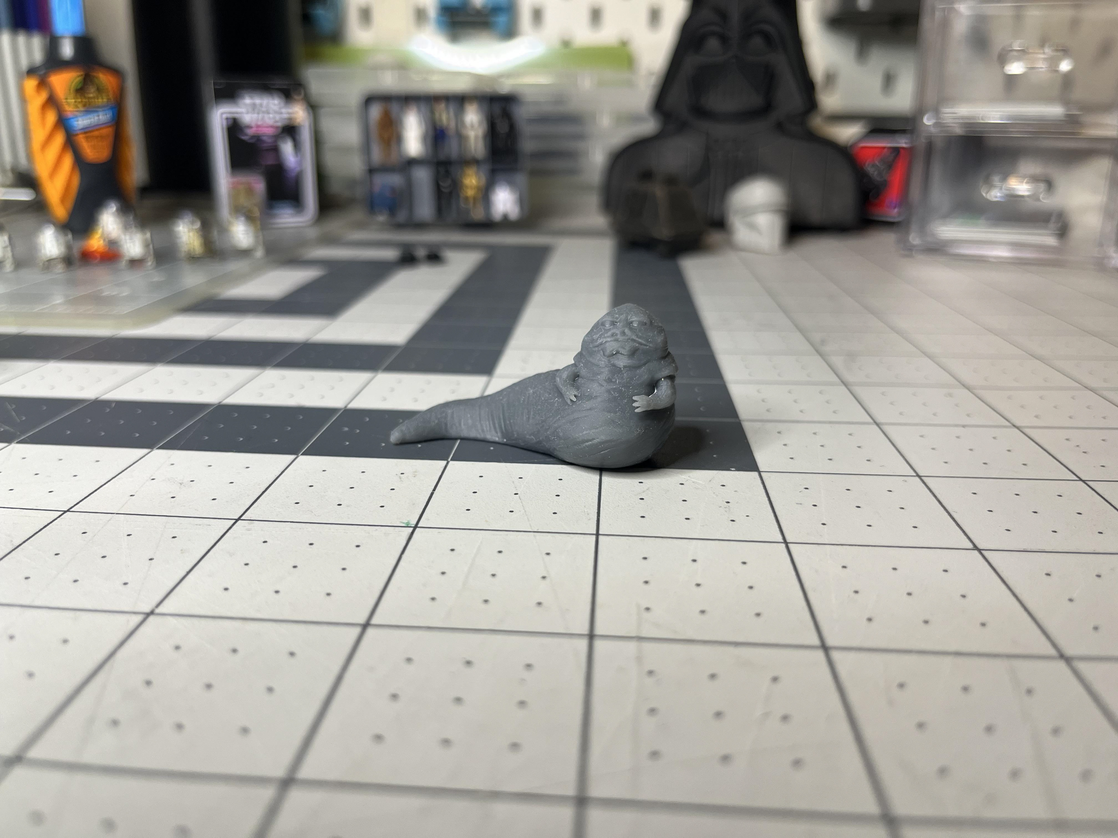Jabba the Hutt figure designed to fit the scale of the Jazwares micro galaxy squadron figures. Figures designed in Nomad Sculpt. Figures printed in resin and painted by hand.